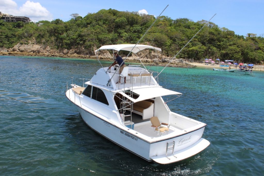 Disfruta de las playas más exclusivas y hermosas de Huatulco, a bordo de un yate de 38 FT. Yate de dos plantas, capacidad 22 personas, cuenta con baño y asoleadero cómodo, sala de estancia, ofrece: bebidas a bordo (Cervezas, agua y refresco) y algunas cañas de pescar chicas.