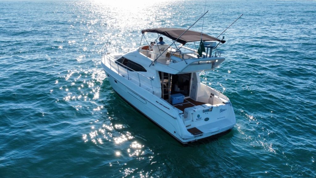 Nuestro yate cuenta con amplias cubiertas para tomar el sol, zona de descanso con cómodas tumbonas y sombra natural, perfectas para relajarte mientras contemplas el horizonte. En el interior encontraras un baño privado. También tiene música a fondo para amenizar tu viaje.